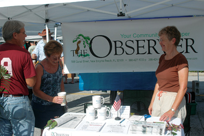 Courtesy photo. Michelle Lott, president and publisher of the weekly Observer newspaper greets visitors at the Farmer's Market on Canal Street. The newspaper is trying to increase its paid subscriptions.