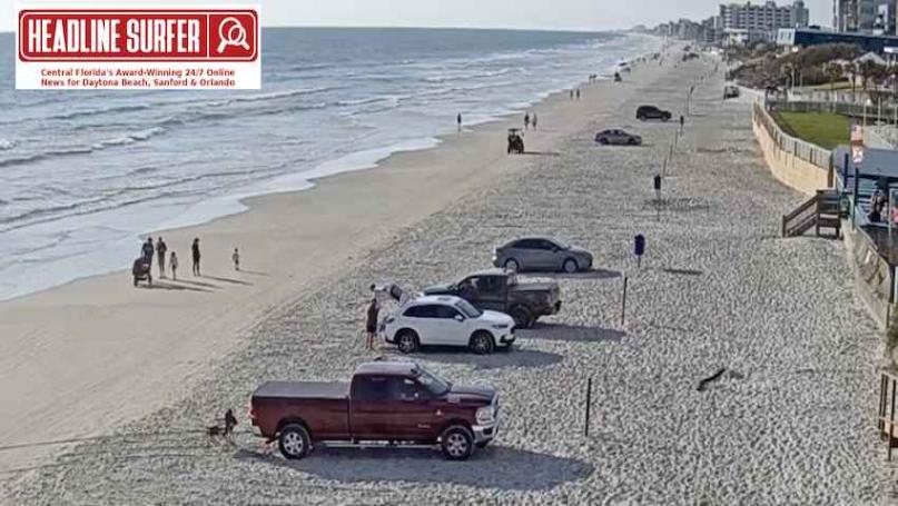 Photo image for Headline Surfer / ABOVE: A family strolls along the Atlantic shoreline in New Smyrna Beach at 9 am Thursday, March 27, 2025, as shown in this beach cam screenshot from the Flagler Avenue ramp in New Smyrna Beach, Florida. LEFT: Here is a screenshot from a public street cam in scenic downtown Winter Garden, Florida, just after 9 a.m. on Thursday, March 27, 2025.