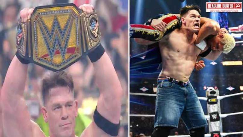 Photos for Headline Surfer courtesy WWE / TOP: Hero turned-heel John Cena returned to ruthless aggression to become the 17-time champion with his big win over Cody Rhodes for the WWE Undisputed World Championship, thanks in part to outside interference from rapper Travis Scott.