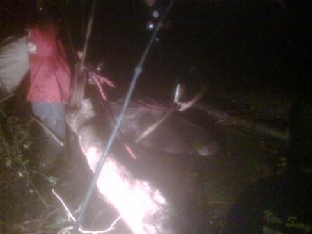 Courtesy photo/Randy Wright. Difficult to see because of darkness, this horse was rescued late Thursday night from a muddy hole by New Smyrna Beach firefighters, a veterinarian and a tow truck operator.