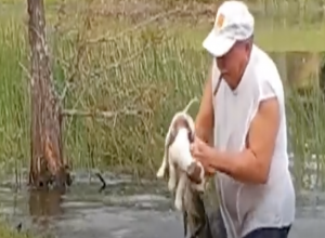 A man has rescued his pet dog after it was attacked by an alligator in Florida. 74-year-old Richard Wilbanks went into a pond, grabbed the…