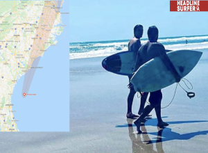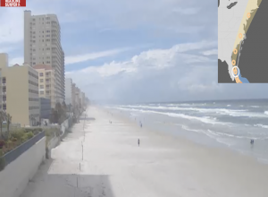 Headline Surfer photo illustration / Screenshot from Volusia County beach cam on Dunlawton Avenue ramp shows a nearly empty beach save…