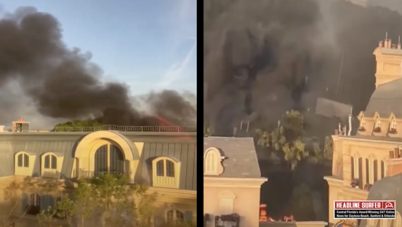 Photo for Headline Surfer / A fire Saturday sent billowing black smoke into the air at EPCOT theme Park in Walt Disney World Resort in Orlando, as shown from these side-by-side shots. The fire, which started in a walk-in cooler in the back staging area, was extinguished. There were no reported injuries.