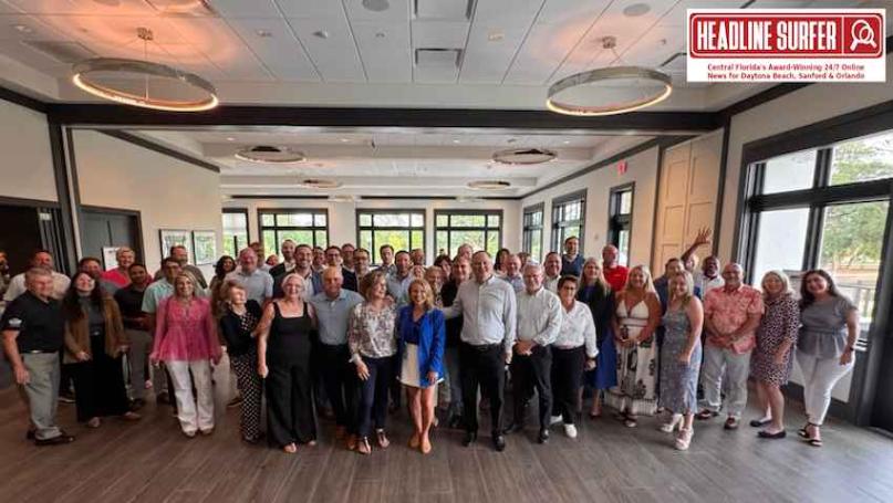 Photos for Headline Surfer / TOP: The larger group affiliated with the Halifax Health – Foundation is shown. BELOW: Shown from left to right: John Guthrie, current vice president & executive director of the Halifax Health – Foundation; Kim Fulcher, vice president of human resources at Halifax Health; and Barbara Petrock & Joe Petrock, the latter, executive director emeritus of the Halifax Health – Foundation.