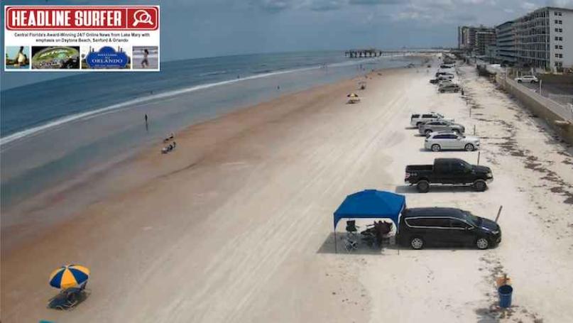 Photos for Headline Surfer / TOP: Due to the rainy weather, there is not much of a weekend crowd at the beach in Daytona Beach Shores, as shown in this beach cam screenshot from the Dunlawton Avenue ramp looking south.