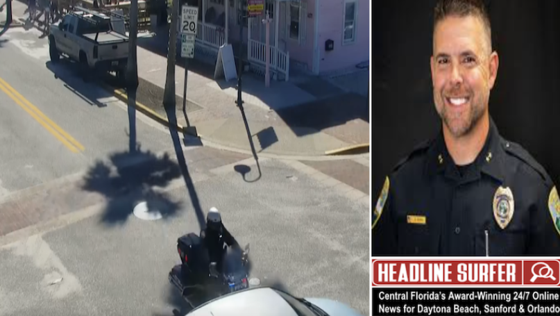 Photos and video for Headline Surfer / ABOVE: A screenshot of the accident around mid-day Monday on Flagler Avenue in New Smyrna Beach, along with a pic of New Smyrna Beach PD motors officer Landon Jones. BELOW: A video of the accident is shown in slow motion.