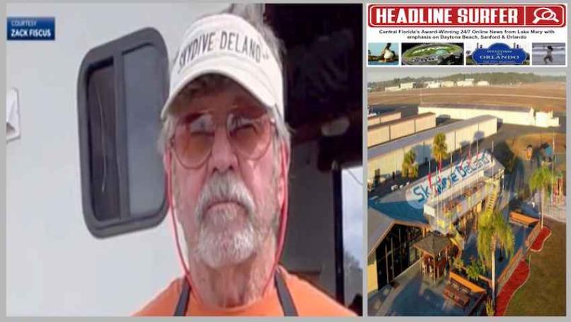 TOP and LEFT: Skydive DeLand CEO Bob Hallett, 74, was killed in a motor vehicle accident on Tuesday, May 13, 2025, in DeLand, Florida.